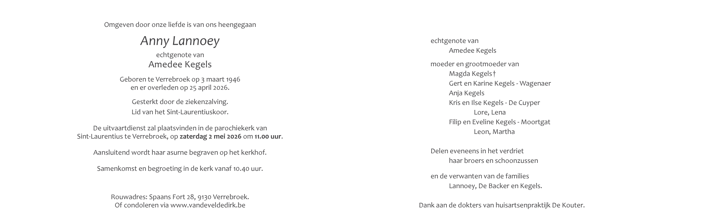 Overleden te Verrebroek (9130) op zaterdag 25 april 2026 op 80-jarige leeftijd