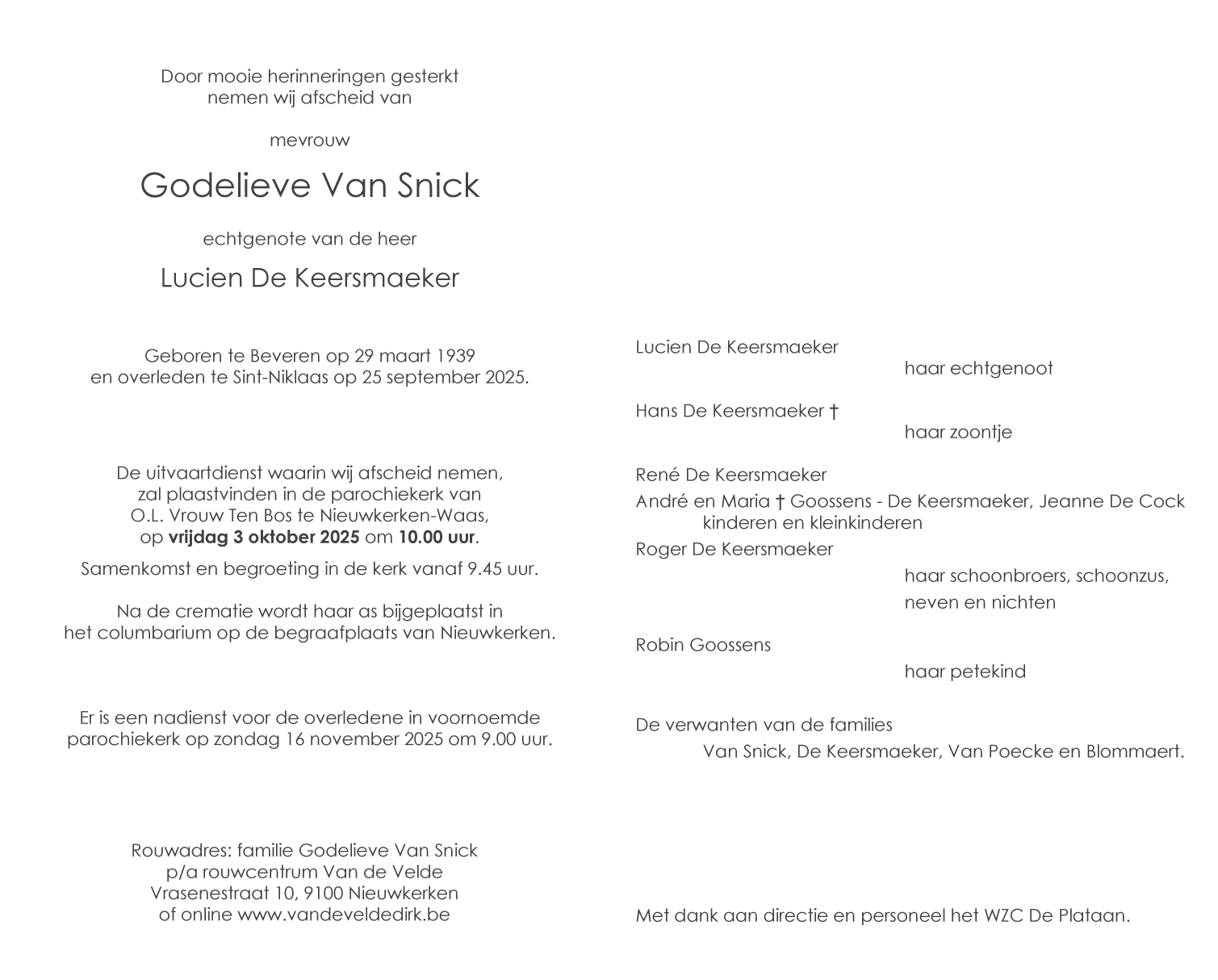 Overleden te Sint-Niklaas (9100) op donderdag 25 september 2025 op 86-jarige leeftijd