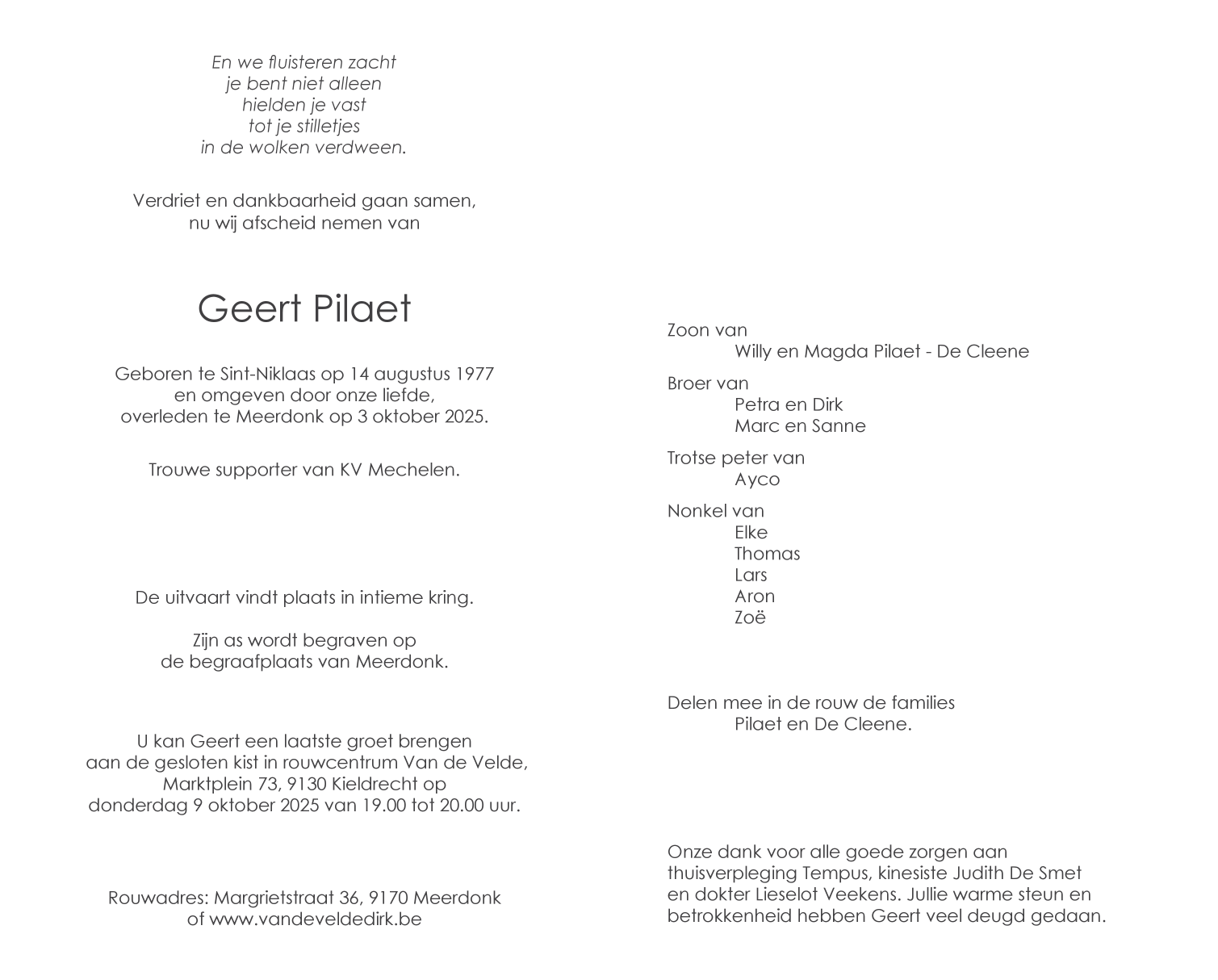 Overleden te Meerdonk (9170) op vrijdag 3 oktober 2025 op 48-jarige leeftijd