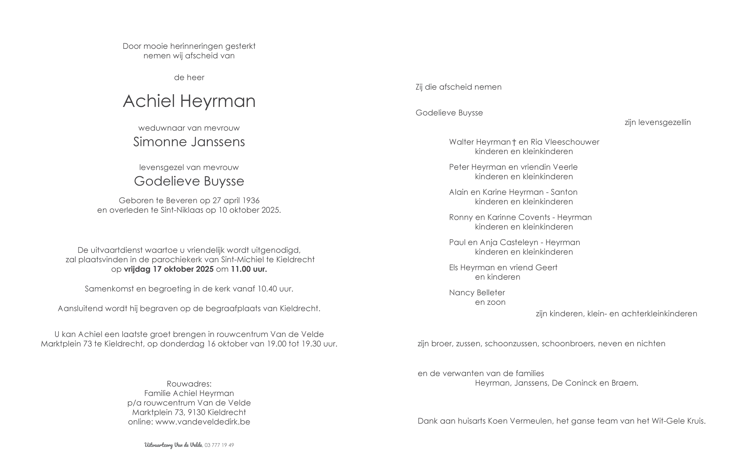 Overleden te Sint-Niklaas (9100) op vrijdag 10 oktober 2025 op 89-jarige leeftijd
