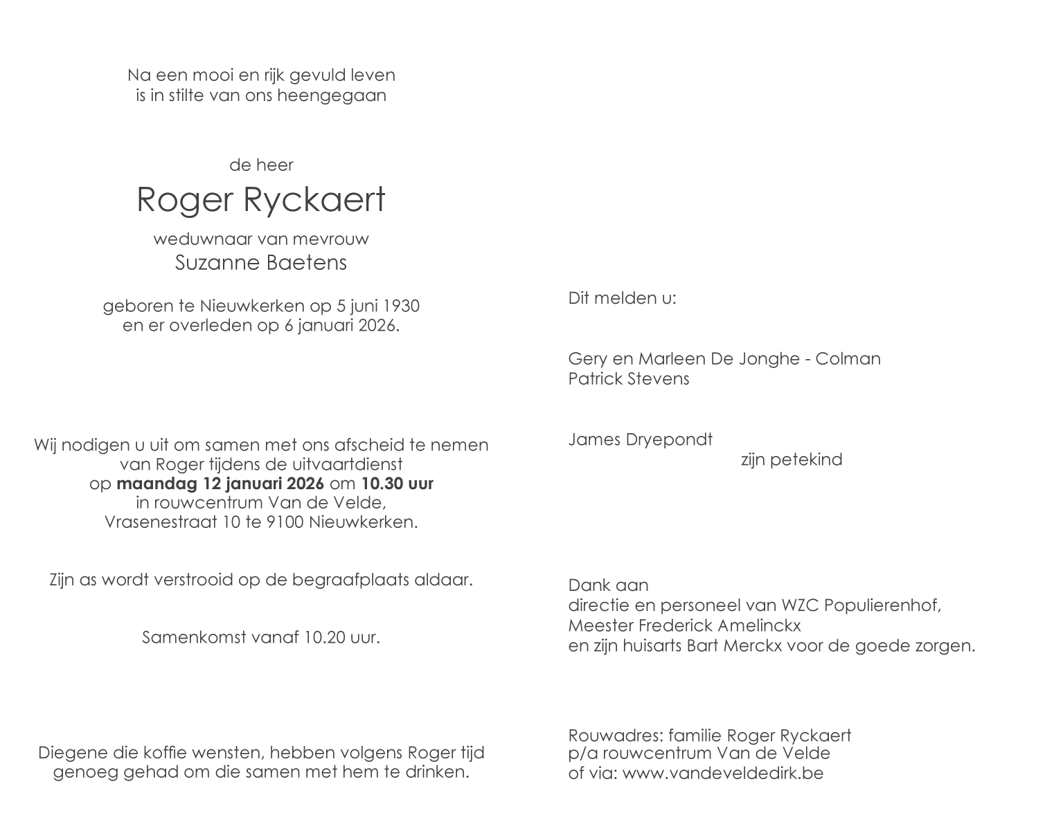Overleden te Nieuwkerken-Waas (9100) op dinsdag 6 januari 2026 op 95-jarige leeftijd