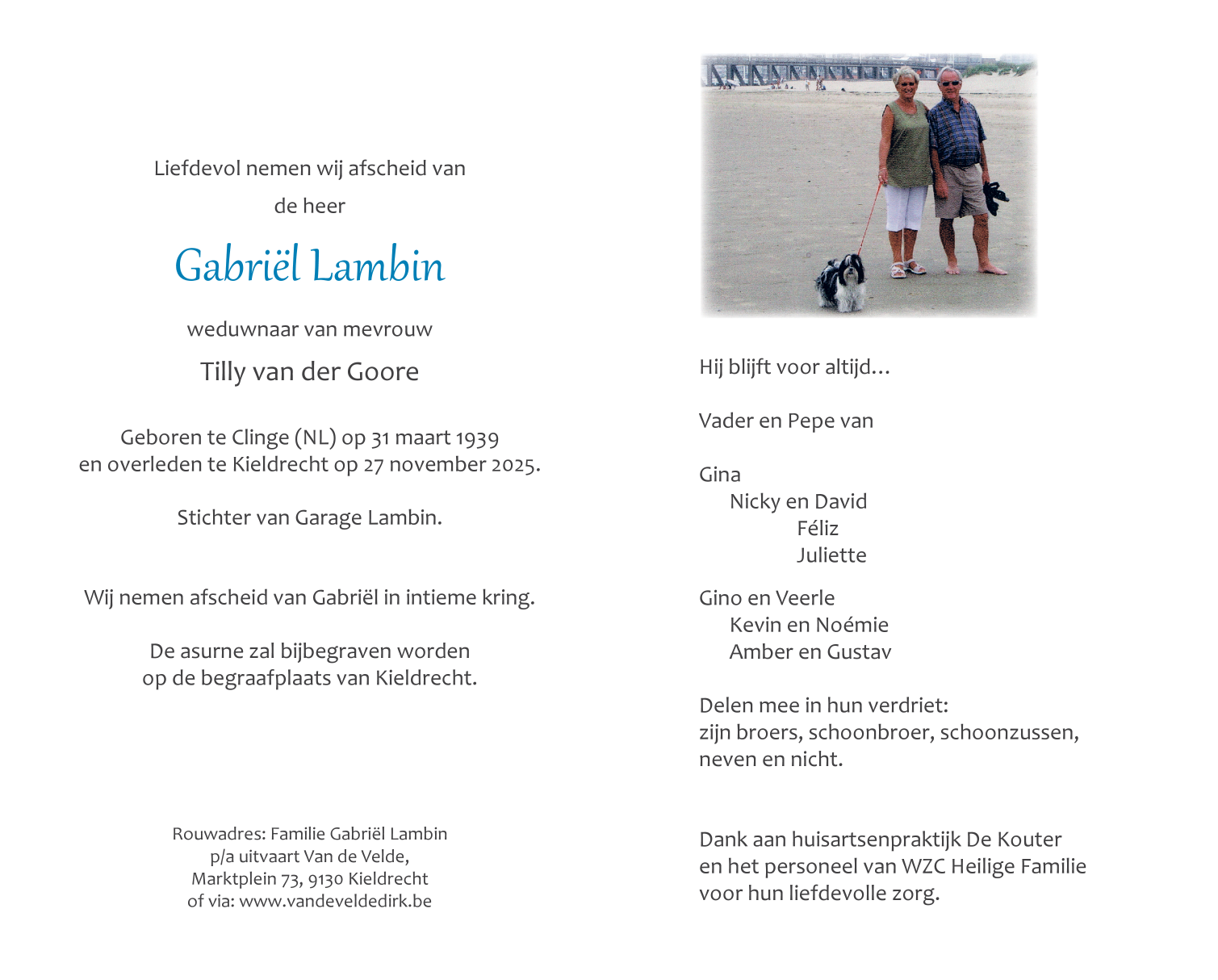 Overleden te Kieldrecht (Beveren) (9130) op donderdag 27 november 2025 op 86-jarige leeftijd
